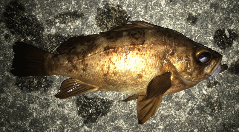 水質を考慮し、マゴバチ MB-02をフォールで釣ると22センチの金メバルがヒット。ファーストキャッチに一安心も束の間。