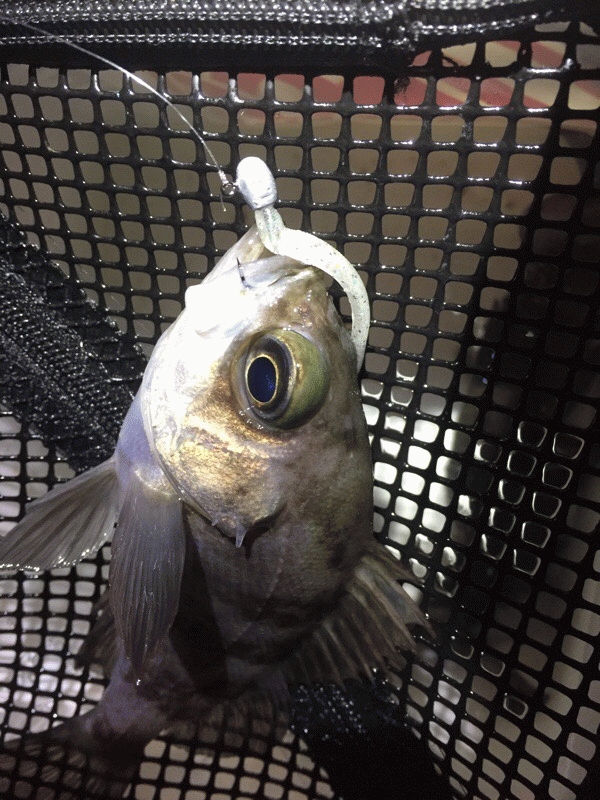 潮位が低くて不安でしたが、1.2gのジグヘッドにマゴバチをセットして撃ってみるとすぐにヒット。