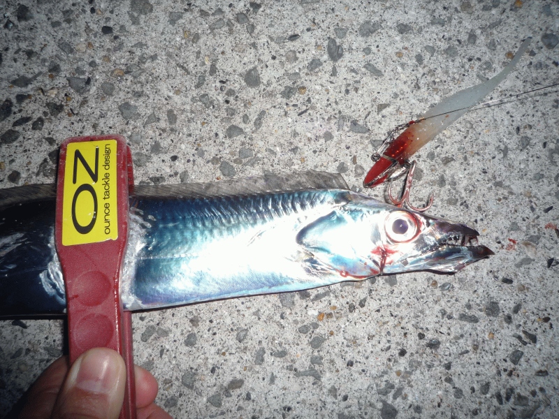 右隣の方が タチウオヒットの様子。きたきた、とFLAPにて