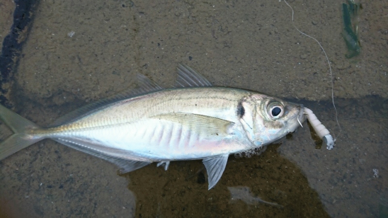 シーバスねらいで河口へ。最近イワシも入ったようで期待大です。カッティングベイト3インチを護岸沿いにキャストして流れにまかせて漂わせるとヒットするが、バラシ。さらに期待に胸膨らませるてキャストするとまたもやヒット。でもあがってきたのはアジ君。ならばソルティクローラーに変えてキャストすると連発。やはりアジには柔らかい素材のソルティクローラーが良いですね。