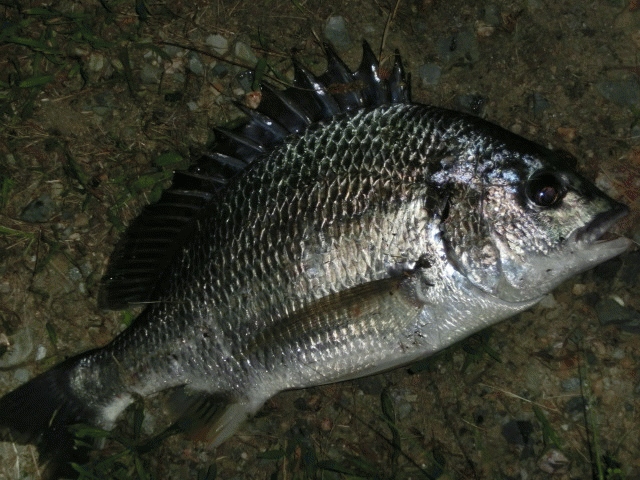 開始から1時間ほど経過してカッティングベイトJ-AC.アンバー/コッパーラメで最初の1匹をキャッチ。