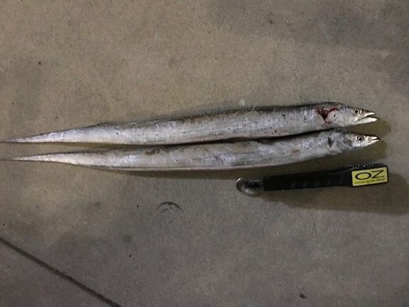 今年初となる武庫川一文字でのタチウオ釣りだったので参加者の方に、最近の状況を聞きながらジアイ待ち。時刻も17時頃になり「そろそろジアイ?」と思いながら、キャスティング開始!しかし、足元辺りでバイトがあるもショートバイトばかりでキャストの距離を短くして、ようやくFLAPヘッド1/2+ピンテール(MT-K21)でF2.5がヒット!キーパーサイズ(75cm)に届かないサイズだったのでカラーローテーションしながら探るも(Lumi-2で)同じ様なサイズが1匹追加できただけでストップフィッシングとなりました。結果キーパーサイズに届かずでしたが、イチバンエイトグループのスタッフの方やオンススタッフの皆様のおかげで、楽しい1日が過ごせました。参加者の皆様も含め、ありがとうございました。