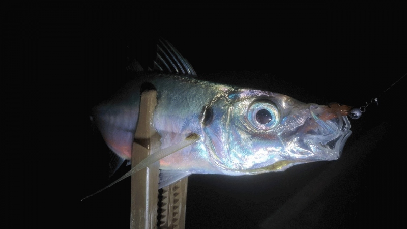 サバも嬉しいゲストですが、今回はアジ狙いだったのでもう少しカウントを沈めて20カウントでやっとアジがヒット。