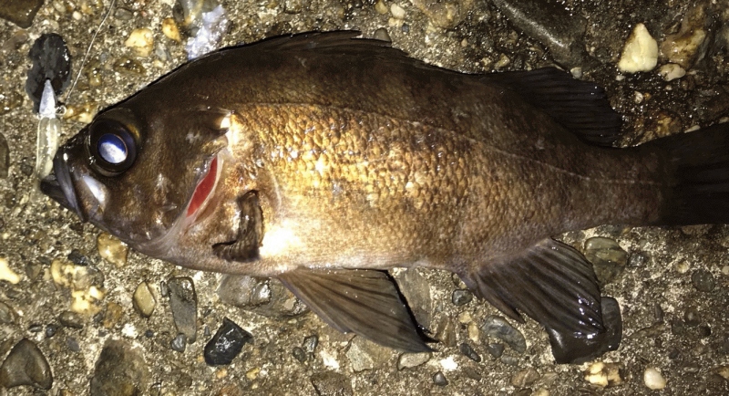 メバルの反応がなくなり、よりボトム付近を意識すると小さなガシラ。