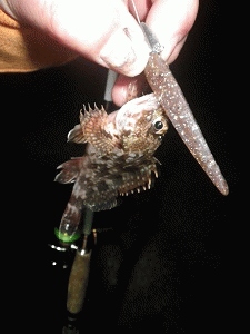 一緒に上がられた方はすでに4匹釣り上げてると聞き焦りますが、この前より良い感じなのでスリットを周りを丹念に探りますが、明るい内はアタリも無く諦めムードでしたが暗くなり出した頃に待望のヒット!