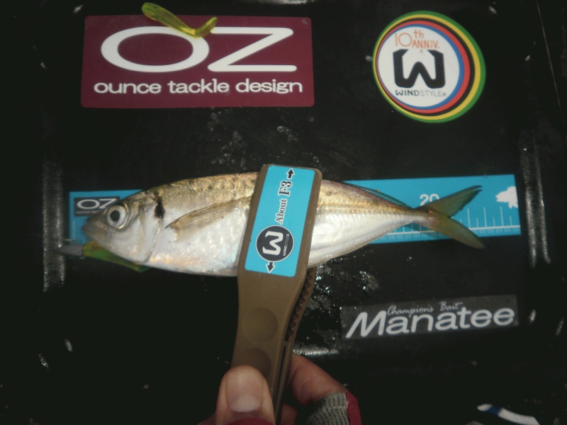 そして、18時半頃にワインドシャッド40(Mキウイ)で23cm程のアジが釣れてきました。なので、アジが回遊してきているのではと考えすぐに