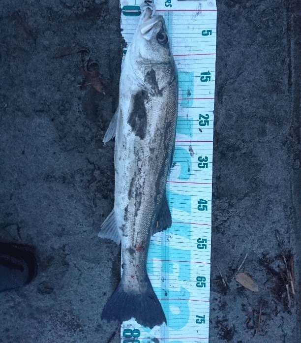 梅雨のシーバスゲーム。今年は梅雨らしく雨がふるのでシーバスも高活性。朝マズメに加工先端に陣取りキャスト開始。流れの強いところ探すと流心のみ。大遠投に選んだのはジグヘッド28グラムにタクミノー60。この組み合わせ、タクミノーのコンパクトさ自重もありかなり飛びます。流心テロテロ巻いてるとガツガツあたり、重みがのったらの遅あわせで70アップ2本とれました。