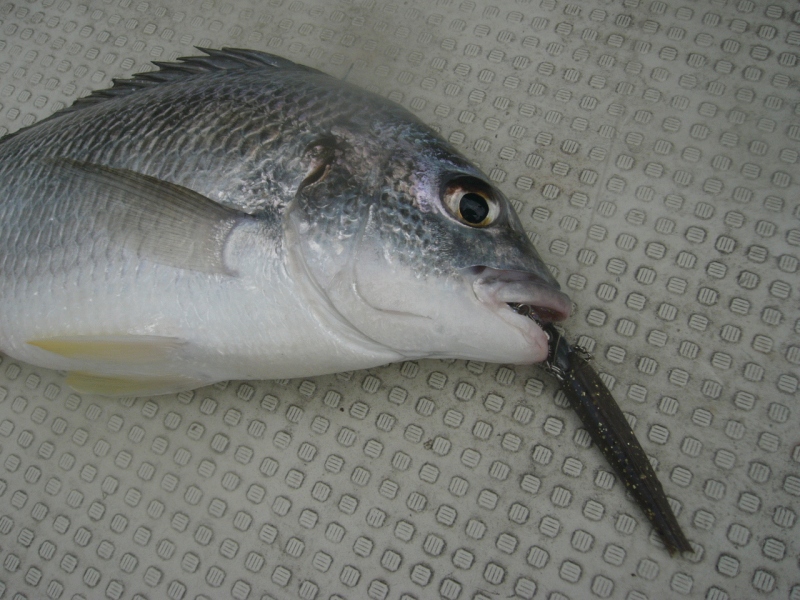 今日は朝一からシーバス探しをして11:00過ぎから短時間ワインド勝負!!簡単に釣れるかと思ったのですが・・二流しノーバイト!少し風の方向や潮の流れを考え三流し目・・ゴン!待望のバイト!サイズは無いものの腹パンのきれいなキビレ!そこから連発!短時間で楽しい釣りが出来ました!今日もハゼカラーに好反応でした!