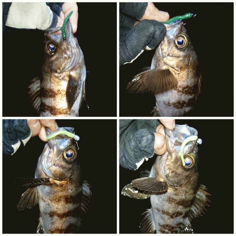 潮の動きと変化が少ないからメバルの活性が低く、カッティングベイトのリトリーブより、軽いジク単+マゴバチでナチュラルに誘った方が今回のヒットパターン。