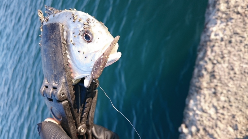 神奈川在住のアッキーです。湘南エリアも今年はメッキがまだ釣れてるとの情報が入り調査してきました。休日ともありルアーマン多数!各々のスタイルで小型ルアーをキャストしてますが釣れてる様子がありません。そんな状況下でも私が信頼するマナティ38をボトムから一定のリズムでシャクってくるとヒット!また、マナティ38で一人勝ちです!