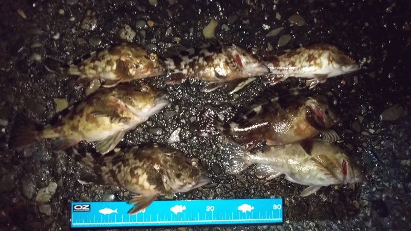 今日は少し足をのばして神戸沖堤防に行ってきました。朝一番の渡船で渡った堤防は初めての場所だったので、まずは、得意のスリット攻めから始めました。すると、一投目から23cmの良型がヒット!その後も一つのスリットで良型が連発し、そして本日最大の25cmも上がりさい先の良いスタートを切れました。辺りが明るくなりだしてからは、沖のブレイク狙いに切り替えこちらも小型ながら18cm前後の数釣りを楽しむ事ができ、キープしていた魚達をリリースして納竿としました。一度だけあきらかにガシラとは違うアタリがあり、合せが決まると同時に重量感とパワフルな引きに耐えられずラインブレイク!!引きからしてアコウに違いありませんでしたので再度リベンジを決めた本日の釣行でした。