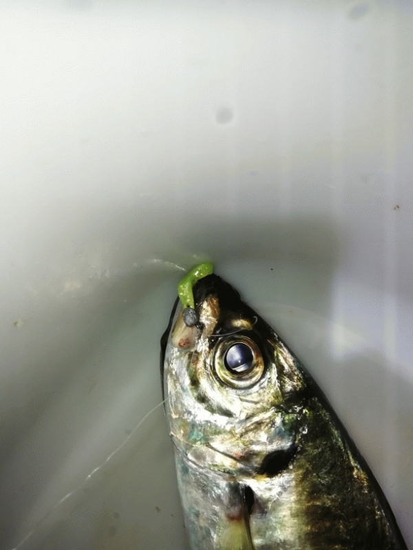 地合い到来か・・と思い急いで〆て再び同じところにキャストするも、アジの反応はなく、ガシラ15cmが2匹釣れたのみ・・