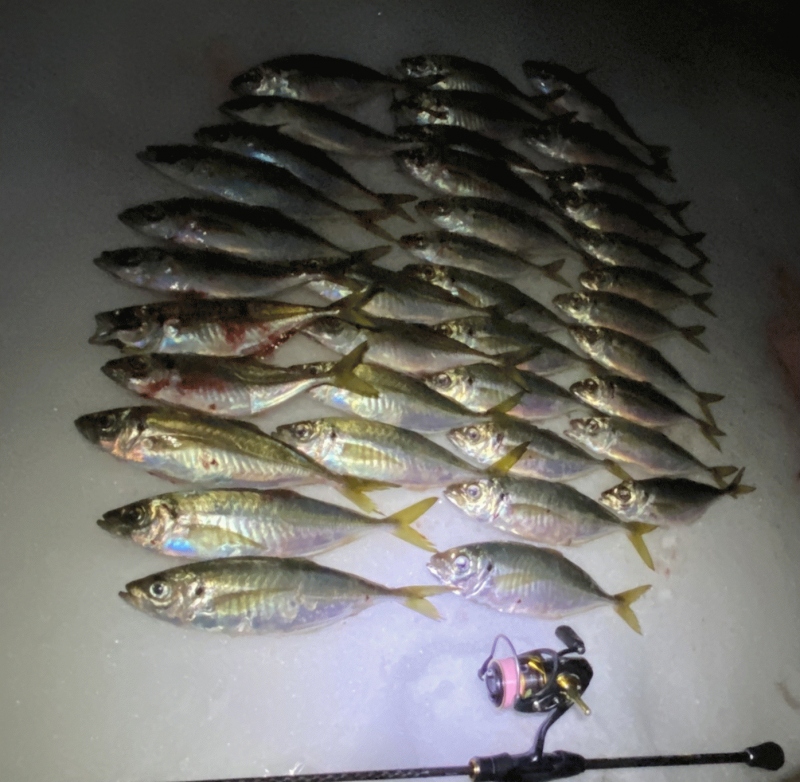 しかも、25cmを優に超えるナイスなアジがマゴバチ・シラスカラーを丸呑みでした。