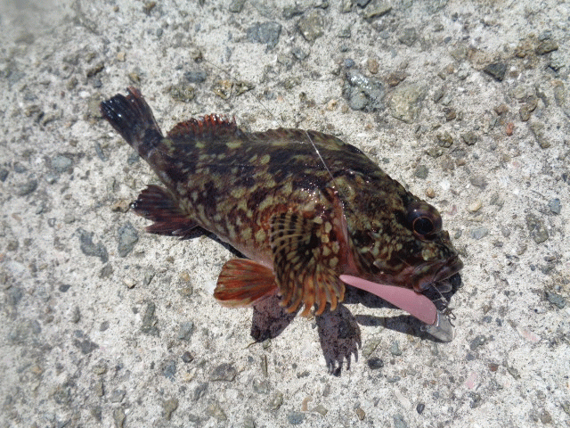 波止の継ぎ目、足元を狙うマナティー38でのライトワインド。