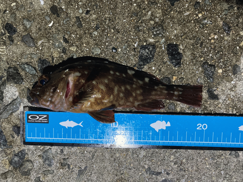 そうこうしている間に、辺りが暗くなり始めたタイミングでひったくる様なアタリで上がってきたのはかわいいガシラでした。