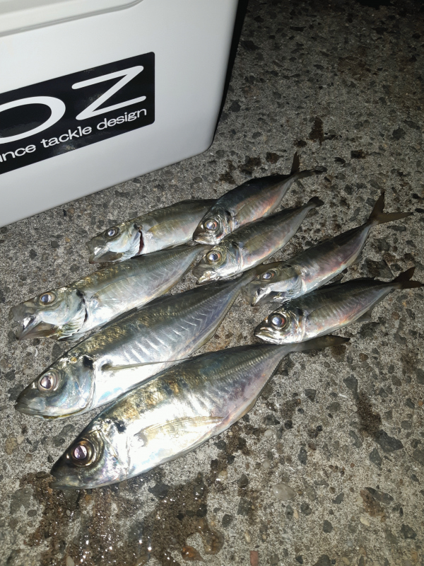 そして完全に日が落ち暗くなったタイミングでアジつくしSTのライムサワーにチェンジし、ボトムスレスレをキープしながら探っているとツン!!こましな23㎝をキャッチ。