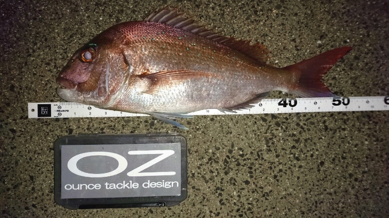 ベイトは居る様なので、シーバスを避けソルティークローラーを流してみると、マダイがヒットしてきます。
