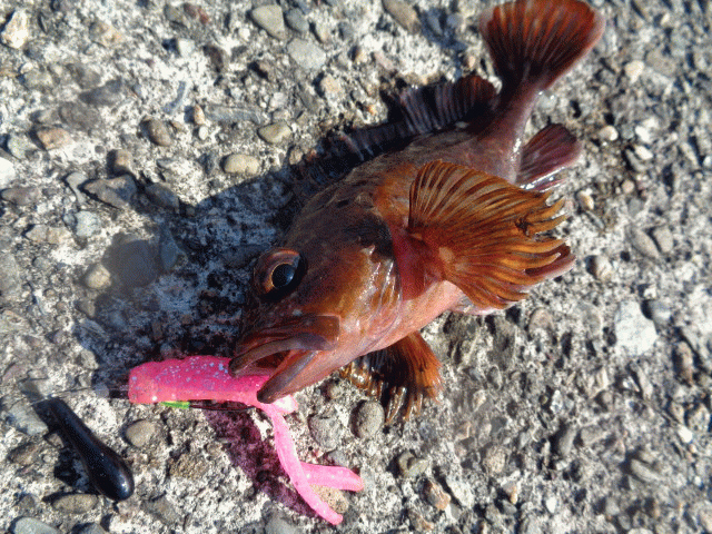 底よりも壁に着く個体狙いで足元波止際ギリに落として着底を繰り返す縦のストラクチャー攻略戦。
